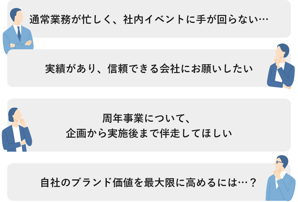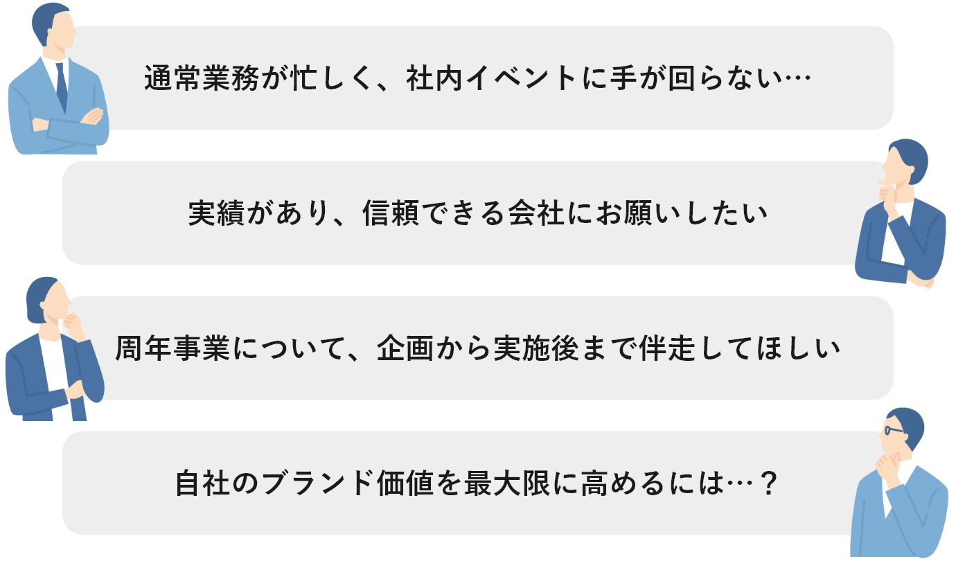 社内イベント実施・企画でお悩みの方は、まずはお気軽にお問い合わせください。