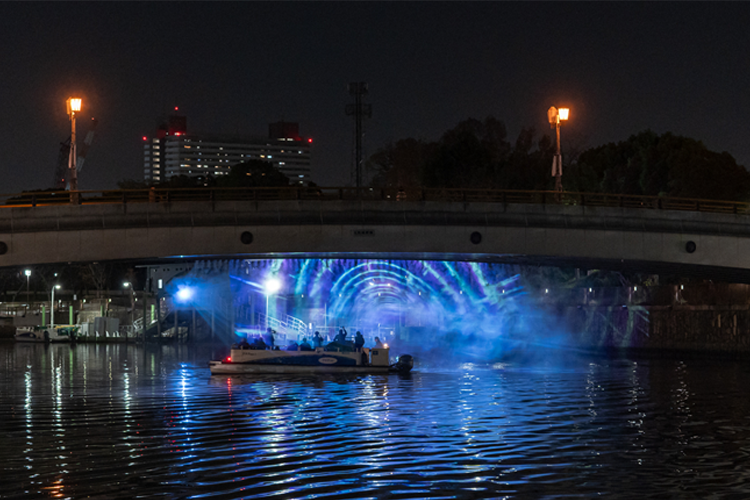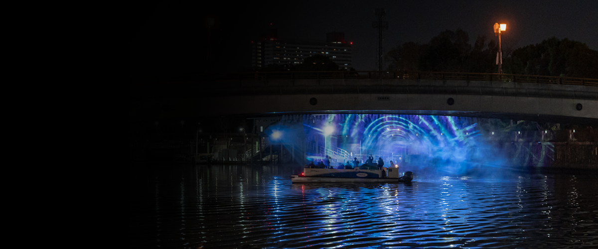 水都大阪を船で巡る、水と光と映像の没入型ライド体験